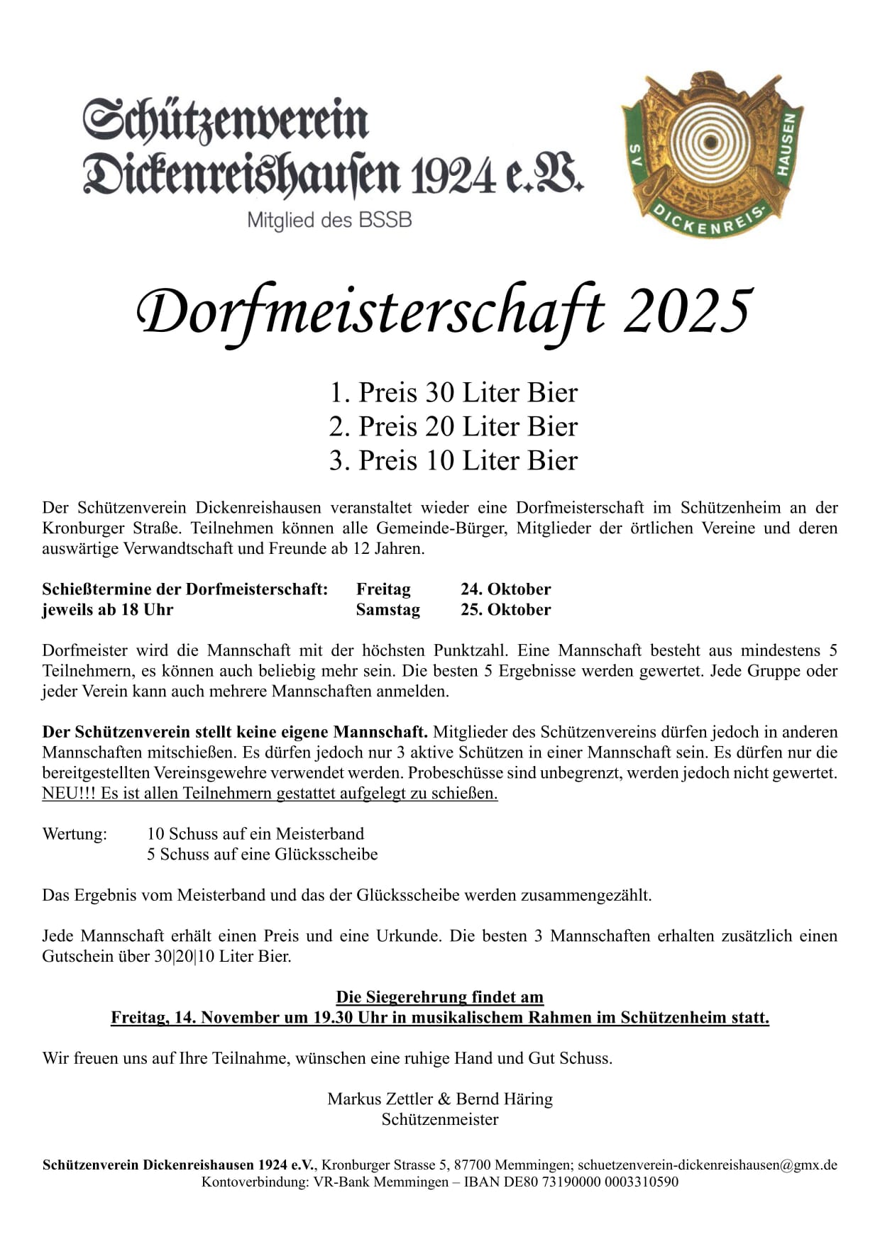 Preisverteilung Dorfmeisterschaft Schützenverein